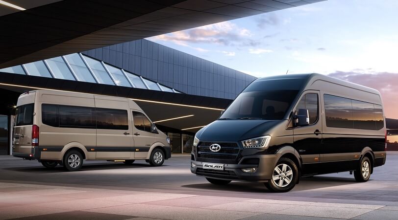 Xe khách Hyundai 16 chỗ có tên thương mại là Solati H350 với kiểu dáng thiết kế sang trọng theo phòng cách châu Âu, giảm tối đa sức cản của không khí, giúp chiếc xe thanh thoát hơn, gọn gàng hơn. Xe được trang bị động cơ Diesel Hyundai 2.5 CRDI công nghệ hiện đại, với kim phun điều khiển điện tử, đạt tiêu chuẩn khí thải EURO 4, công suất 170 mã lực, mang lại khả năng bứt tốc nhanh chóng, giúp cho người lái xe cảm thấy thoải mái khi điều khiển xe.